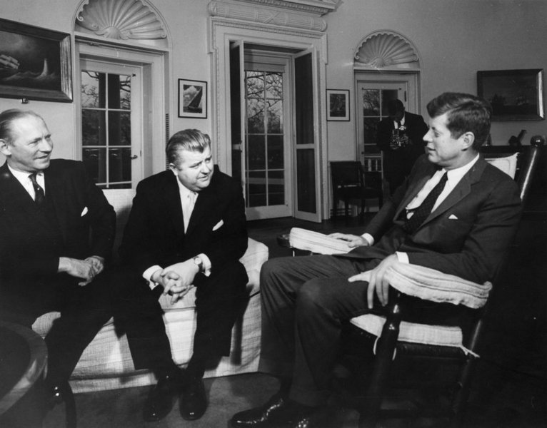 On 4 December 1962 the Danish Foreign Minister Per Hækkerup (middle) met with the US President John F. Kennedy (right) in the Oval Office at the White House in Washington. Also in attendance was the Danish Ambassador, K.G. Knuth-Winterfeldt. According to American archive material and Danish news reports, items on the agenda included the escalation of Cold War tensions during the Cuban missile crisis in October 1962, American–Danish co-operation over military installations in Greenland and a call for a stronger Danish financial commitment to NATO. Hækkerup mentioned the hope that Denmark would soon become a member of the EEC. A few days earlier he had met with UN Secretary-General U Thant. These international meetings epitomise Hækkerup’s analysis of the cornerstones of Danish foreign policy: integration in the Western bloc through co-operation on security and economy issues, while ideals of peace, broader international co-operation and support for developing countries were anchored in the UN. Photo: JFK Library